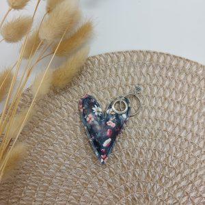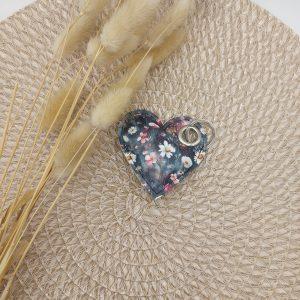Obesek srce – rožice na črni podlagi