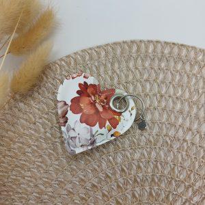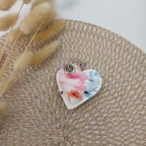 Obesek srce – rožice na beli podlagi
