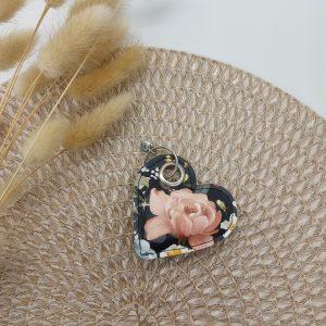 Obesek srce – Rožice na črni podlagi