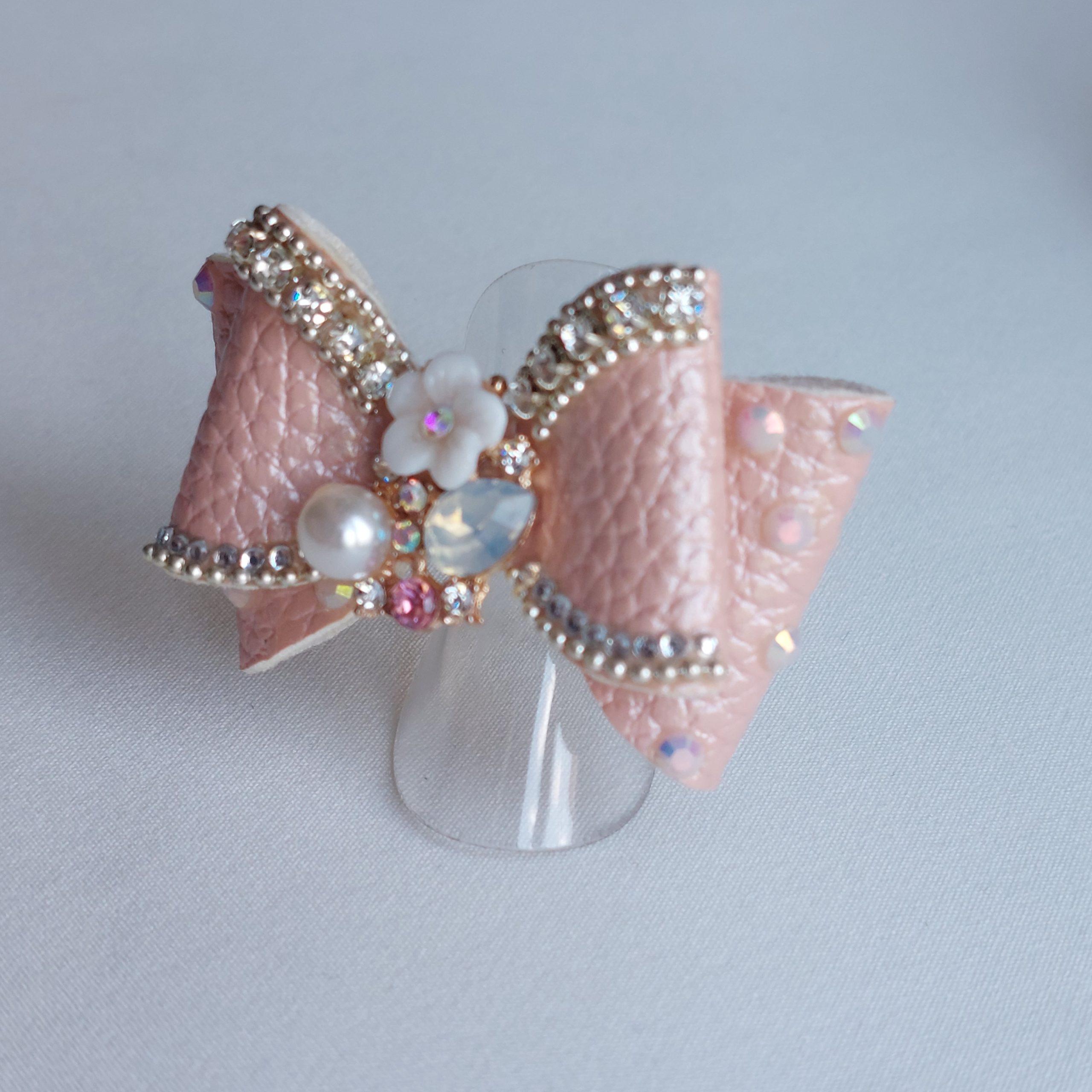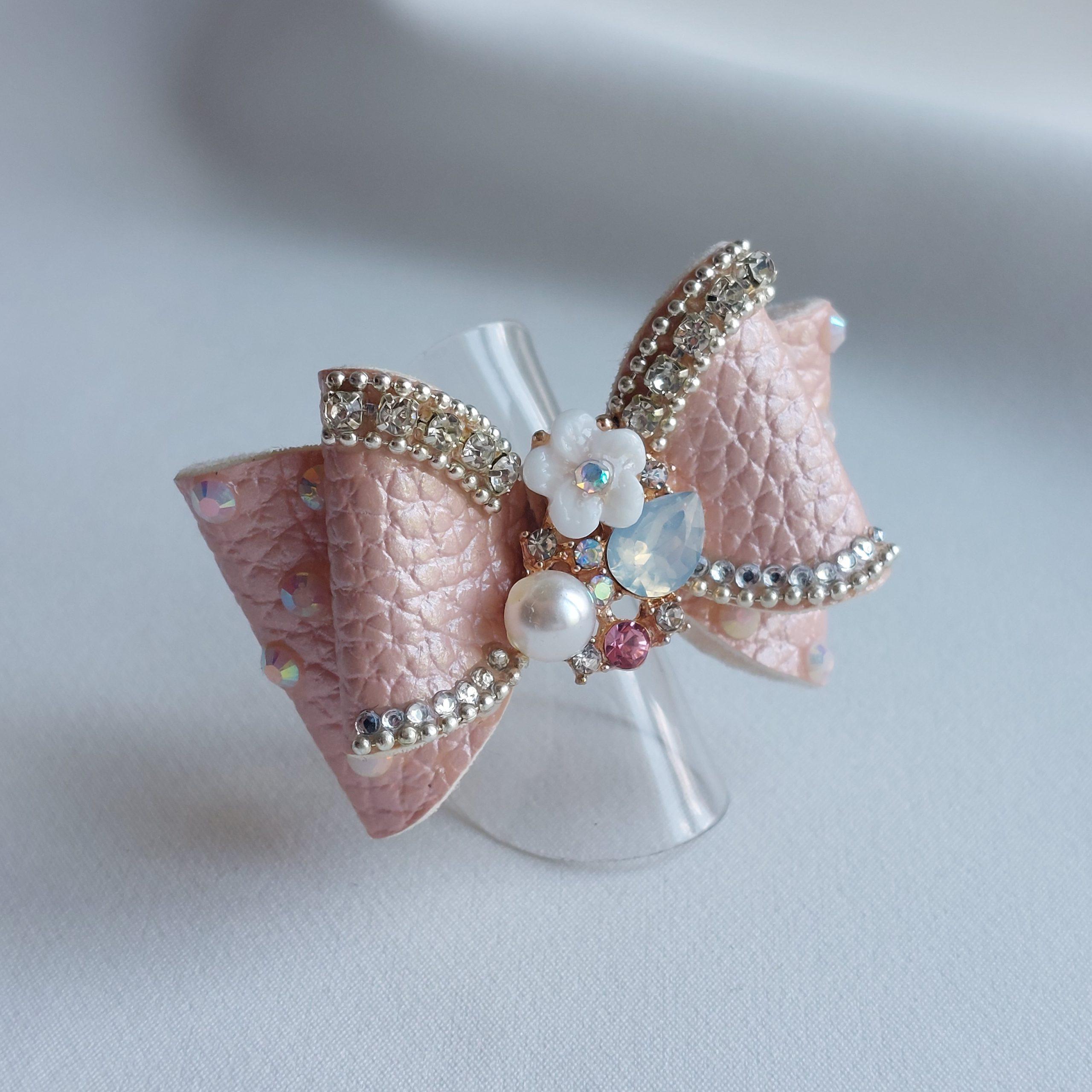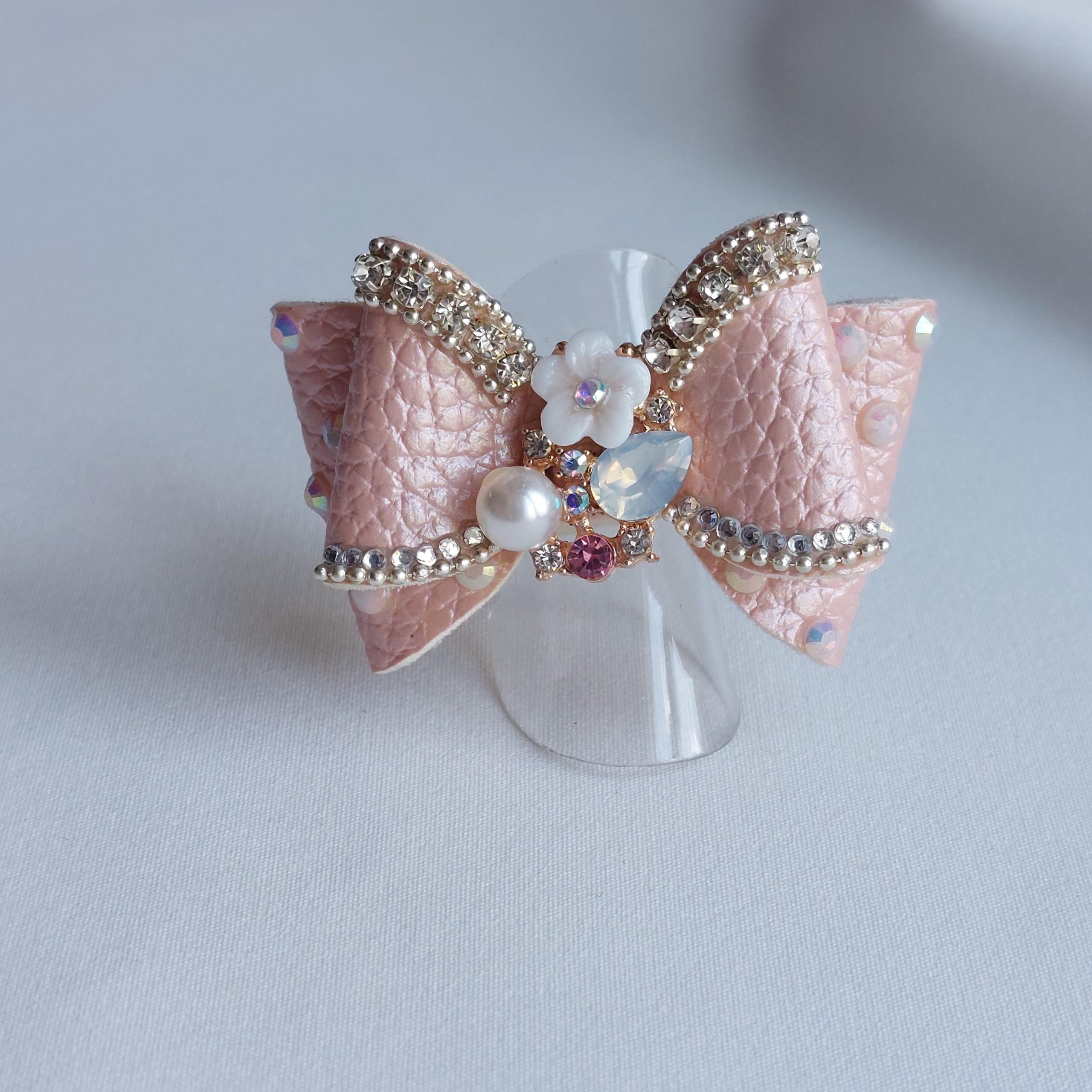 Razstavna mašna za kužke iz umetnega usnja, roze.