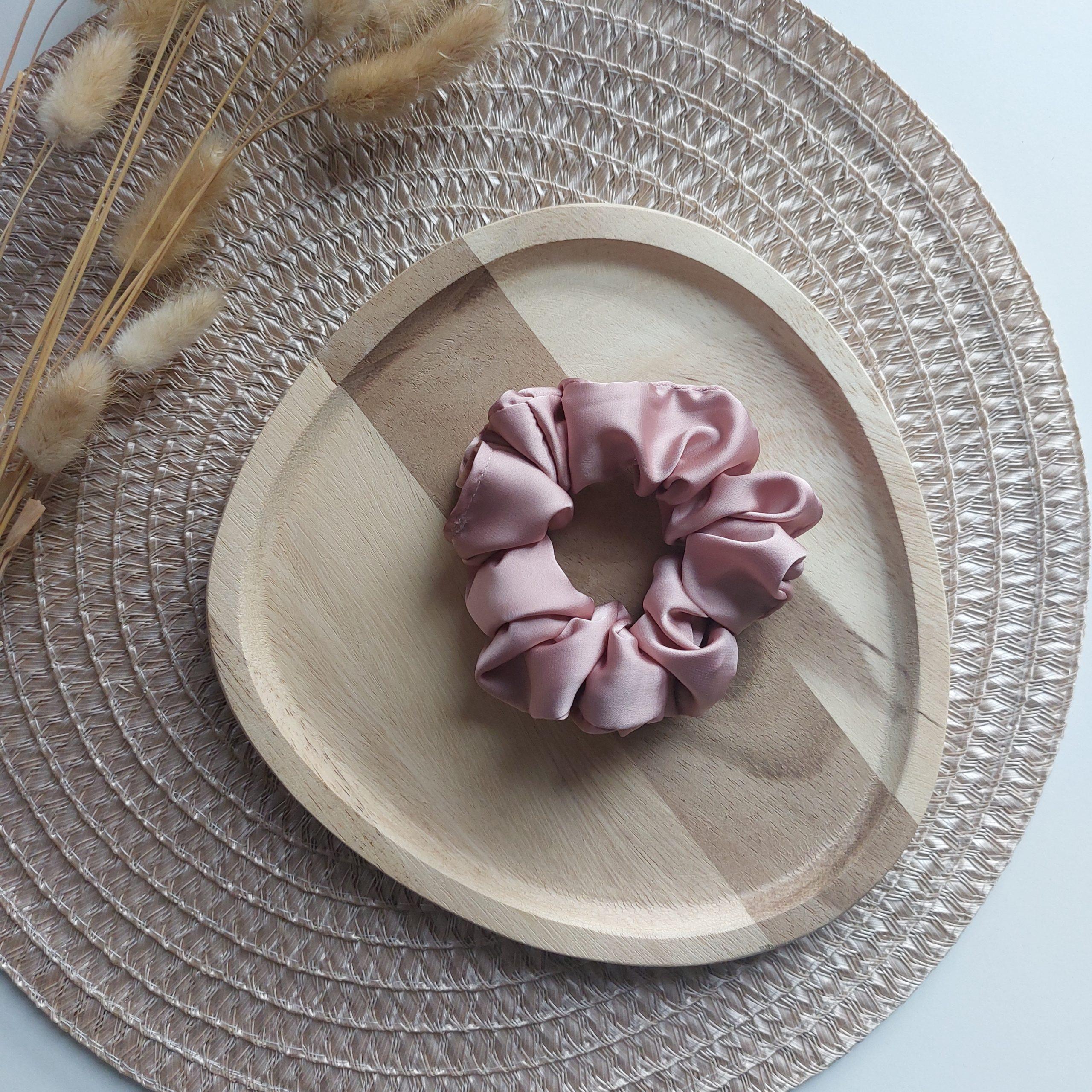 Scrunchie, svila, umazano roze
