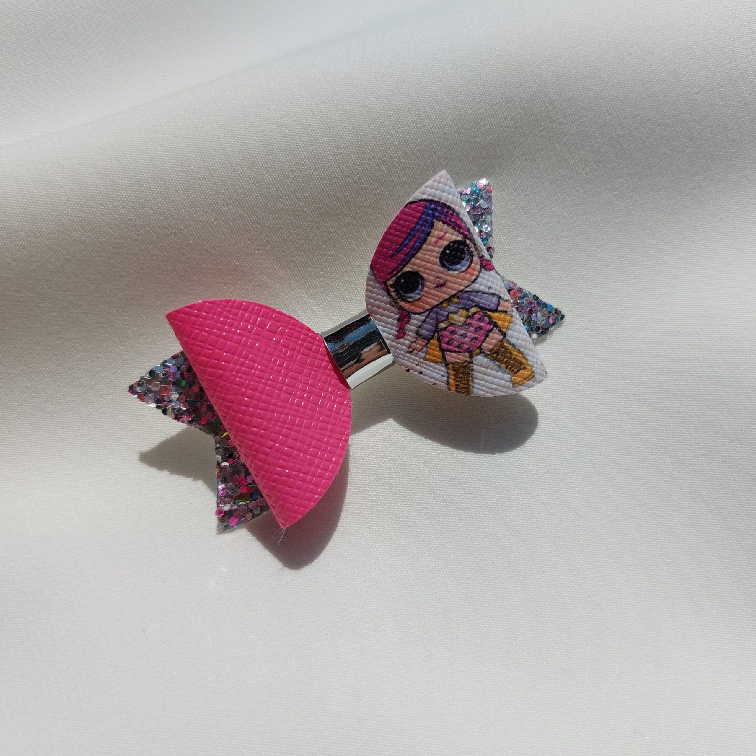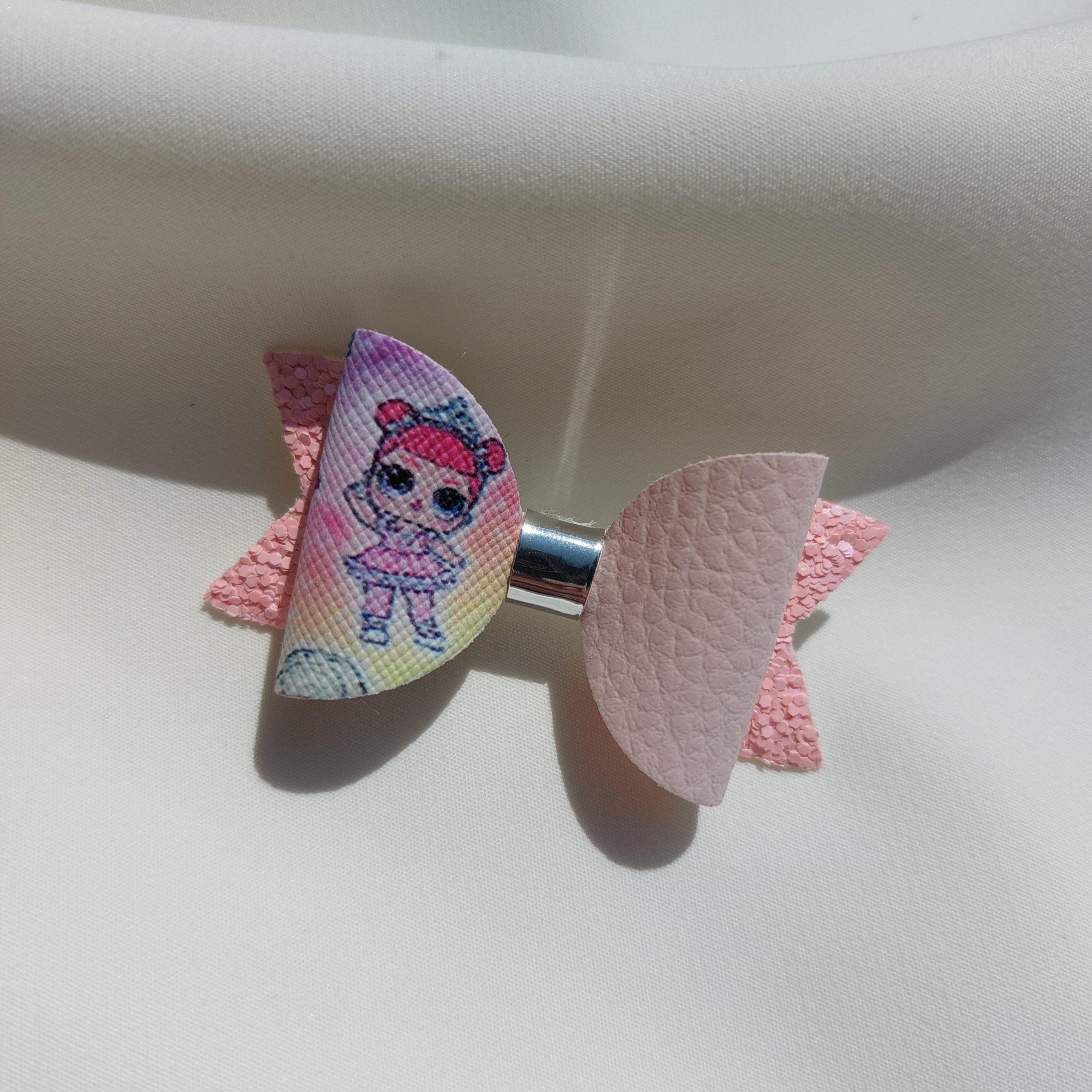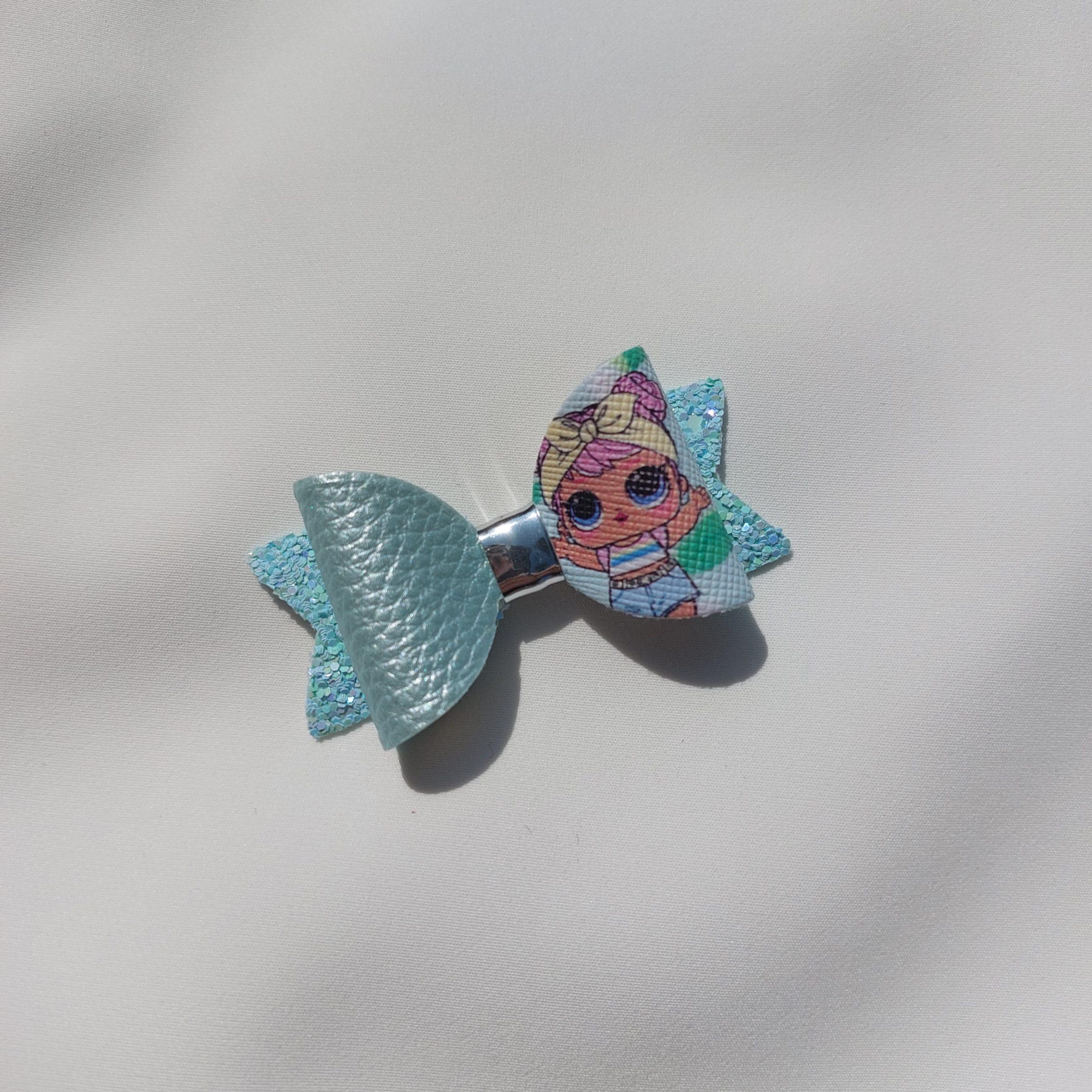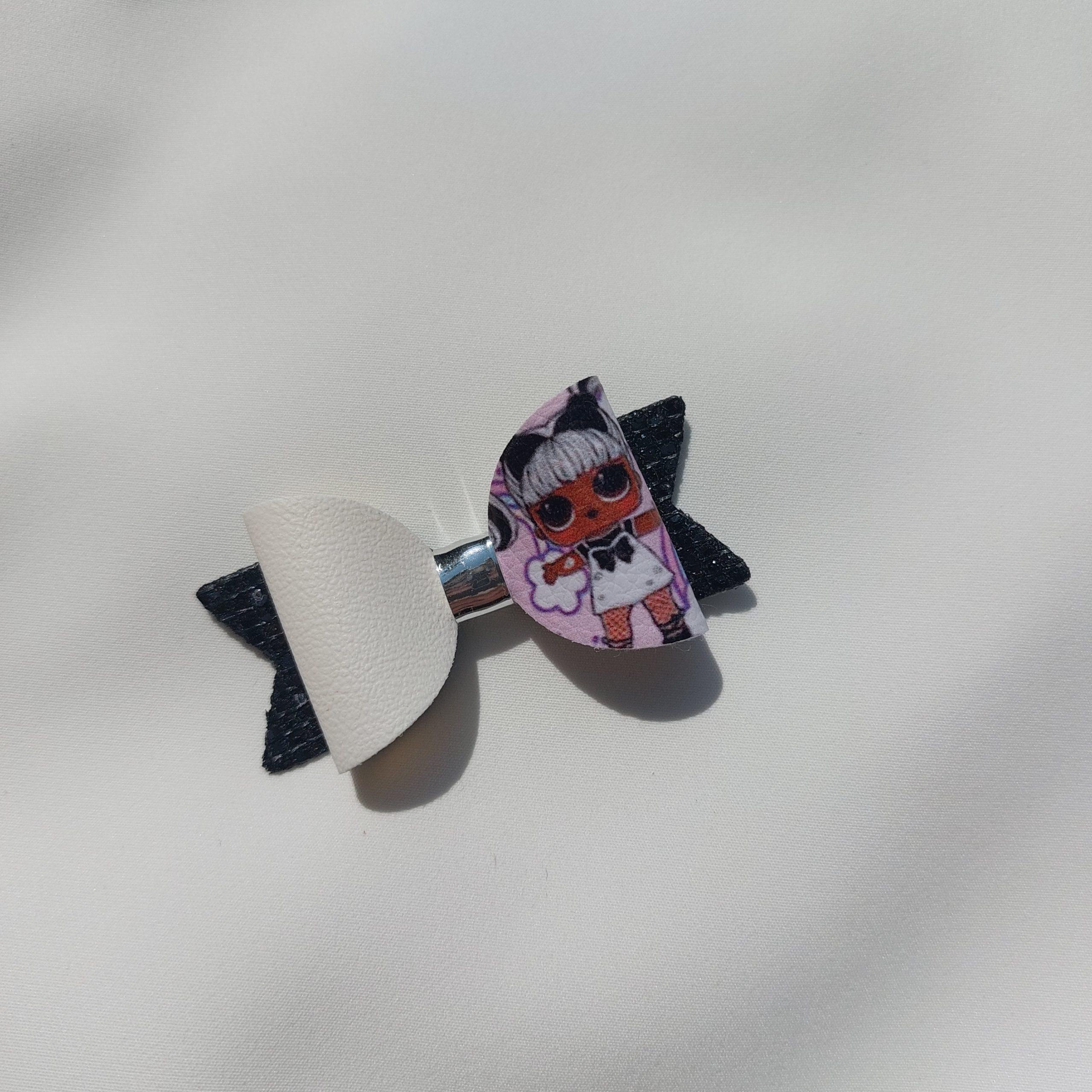 Špangica na krokodilčka s pentljo iz umetnega usnja in bleščic.
