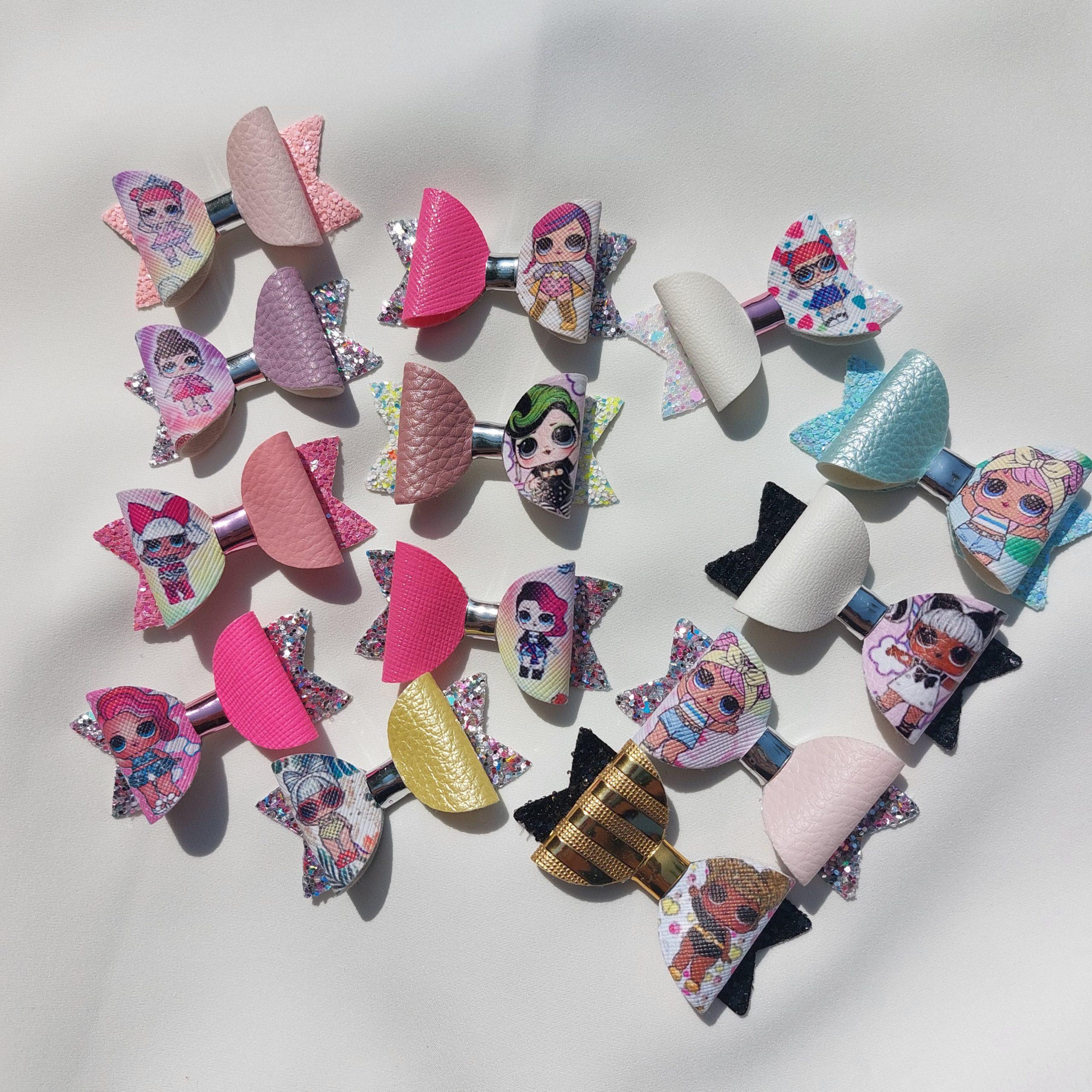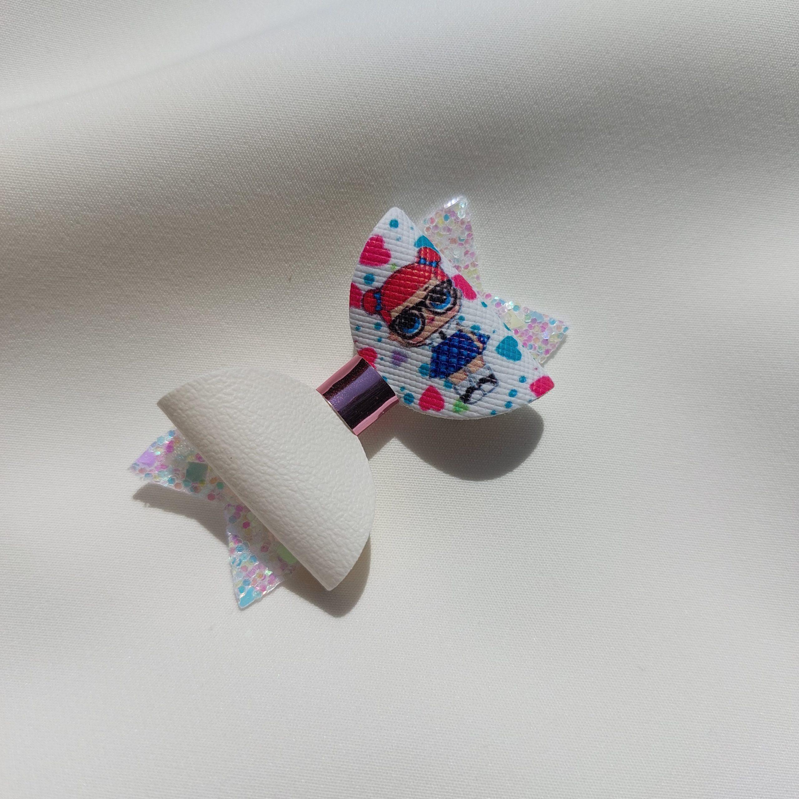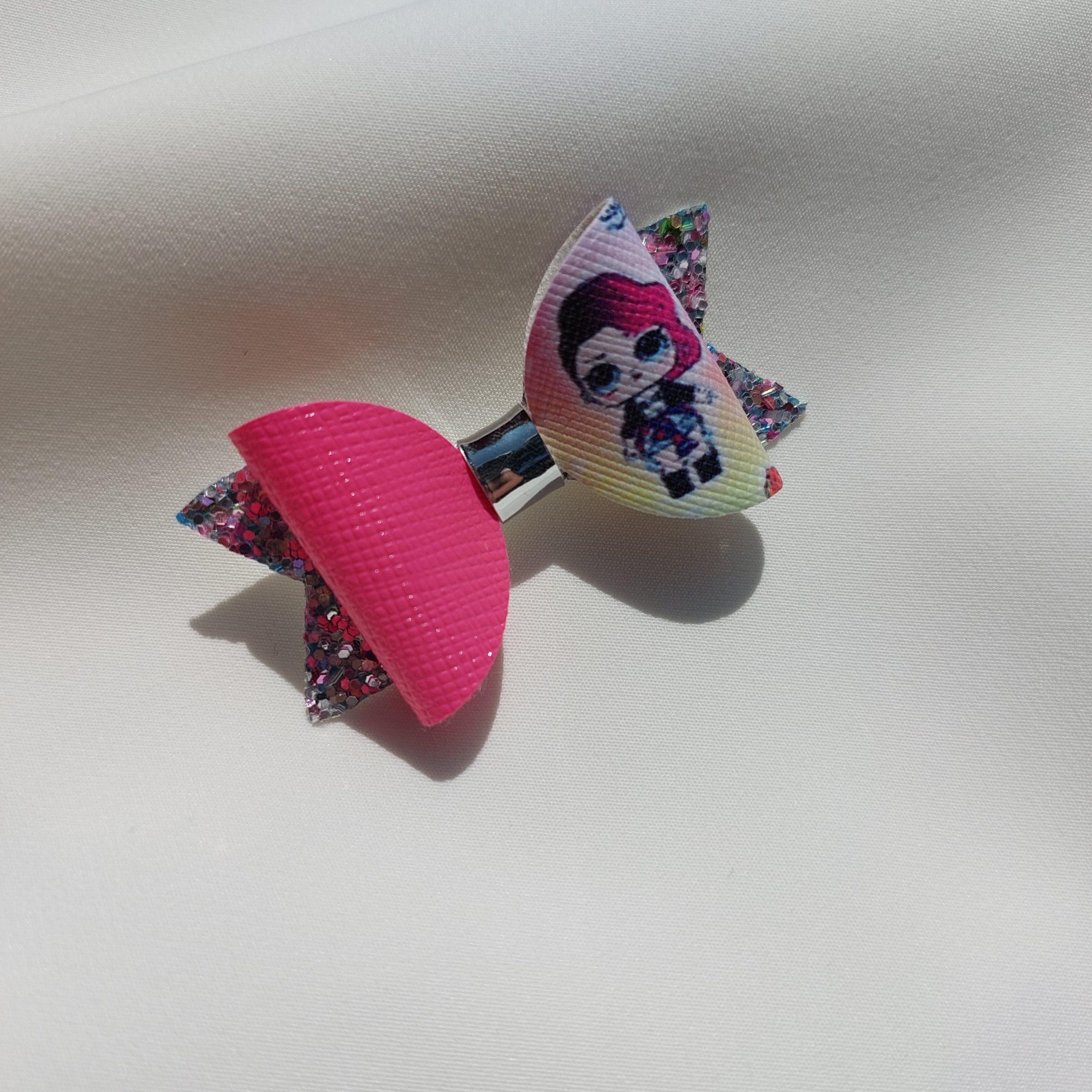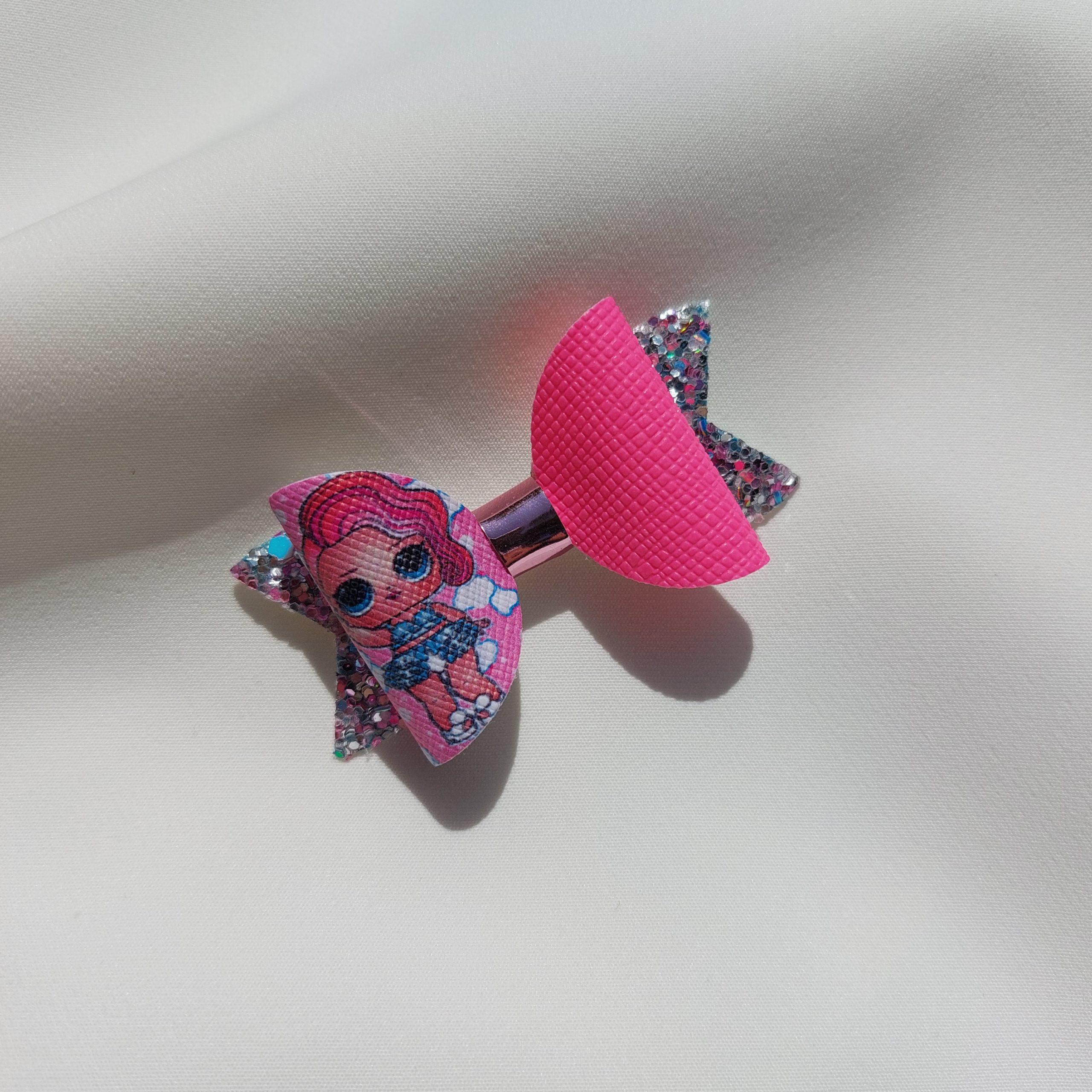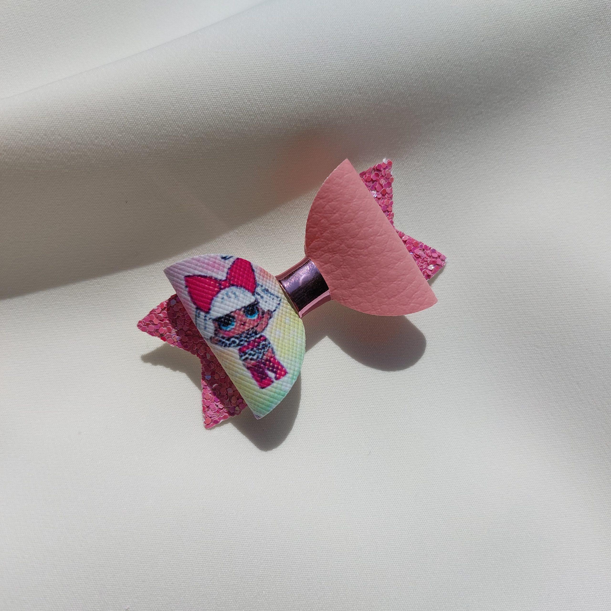 Špangica na krokodilčka s pentljo iz umetnega usnja in bleščic.